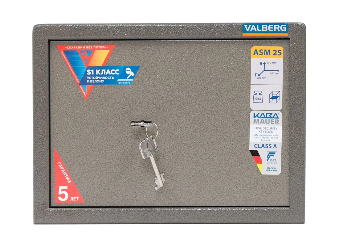 Valberg ASM-25 обладает сертификатом качества, удостоверяющим взломостойкость начального класса S1 в соответствии со стандартом ГОСТ Р 55148-2012.